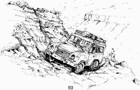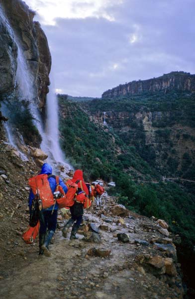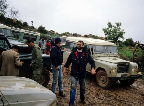 Un camion de matériel y restera ensablé jusqu'à la fin de l'opération, endommageant compresseur haute pression et matériel d'éclairage. Mais, voilà que la voie s'incline, et que de la piste, nous passons bientôt à un chemin muletier. Le sol disparaît sous la roue d'un véhicule de tête, un muret s'abat devant un autre, le sol devient glissant, il faut descendre, pousser, remonter, puis redescendre à nouveau pour alléger le véhicule.