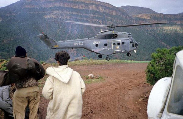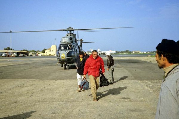 après le sauvetage l' hélicoptère dépose la premiere equipe (ici jc frachon) à agadir, par Patrick Degouve