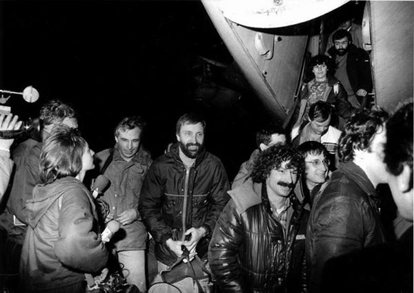 Ils ressortent même la caméra vidéo, qui, à bout de batteries, filme quelques instants de l'évènement. Enfin, de la lumière ! Trois plongeurs P.DEGOUVE, R.LAVOIGNAT, J. MICHEL, arrivent. On regroupe le matériel et tout le monde se jette à l'eau. Deux d'entre eux, qui ne savent pas nager, se raccrochent à des bouées.