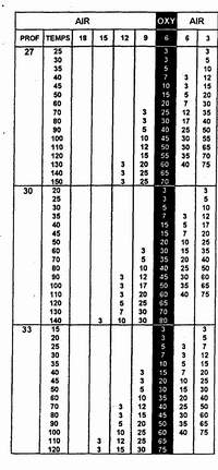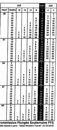 Les tables M.T 92 ( ou Comex Pro), conçues pour les scaphandriers professionnels, semblent les mieux appropriées à la p.s. pour les raisons suivantes