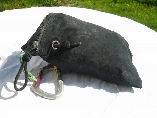 Des poches de Wings peuvent fonctionner, il est possible de la fabriquer soi même. La fermeture peut s'effectuer avec un velcro, une fermeture plastique. Mais elle doit être solide, indéchirable, bien fermée (fermeture éclaire plastique par exemple) afin de ne pas semer ces petites affaires dans le siphon ou dans la grotte, facilement manipulable, même sous l'eau avec des gants.