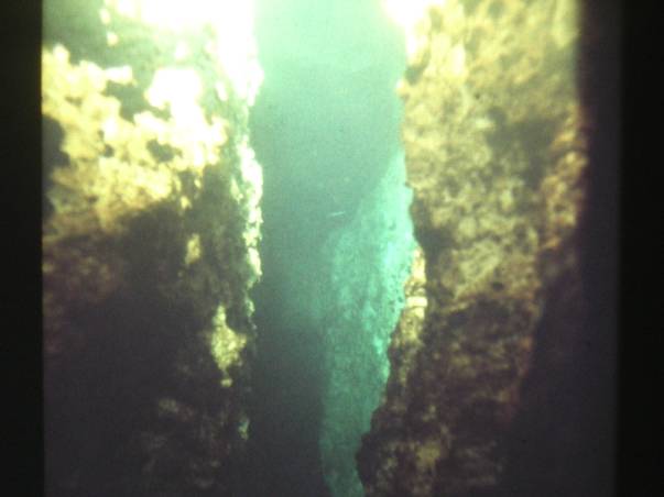 plate-forme !! On avait fini Henri et moi et les derniers outils on été fourrés dans un sac. On pouvait partir mais tout allait très mal encore ! D'abord, j'étais sur la plate-forme, j'avais enlevé mes palmes du mousqueton de ma ceinture de plomb. Je n'ai pas fait attention, cela faisait plus de quatre heures que nous étions ici, un peu fatigué quand même, mais pas d'excuse !! Une palme m'a échappée et le courant de la grotte de THAÏS l'a emporté. Mon retour serait un peu plus compliqué ! Mais pas grave ! Le plus grave était le reste !!