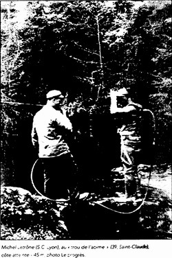 Par ailleurs, les distances parcourues en siphon s'accroissent notablement. D'abord le fait d'étrangers, comme l'Allemand J. Hasenmayer ou les Suisses du Groupe Lémanique de Plongée Souterraine de Lausanne (O. Isler, C. Magnin), puis des Français, comme C. Touloumdjian ou B. Léger, ces plongées atteignent et dépassent parfois le kilomètre. Mais on demeure encore loin des exploits américains en la matière, telle la jonction de 2074 m entre Cisteen Sink et Orange Grove, réussie dès 1972 *10.