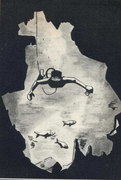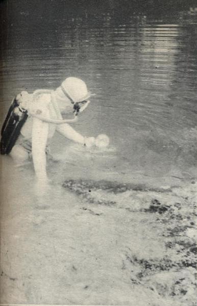 — J'avais très chaud dans mon vêtement et j'ai été saisi par le froid. De plus, lourdement lesté par le matériel de pêche et la grosse lampe de scaphandrier, je suis descendu trop vite sans pouvoir déglutir et laisser la pression s'équilibrer correctement dans mes oreilles. Ajoutez-y l'émotion de cette première plongée dans le noir. Tout cela réuni m'a donné un malaise et j'ai plus ou moins perdu connaissance pendant un moment. Heureusement, je n'ai pas lâché l'embout de mon appareil.