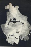 Arrivé au fond de la vasque, je décide de faire un palier de décompression ( 1 ). Il faut croire que la narcose de l'azote agit encore sur moi, car je détache le câble et le laisse filer seul, sans m'inquiéter de l'effet que cela peut produire en haut. Charvoz essaie bien de m'inciter à remonter, mais en vain ;