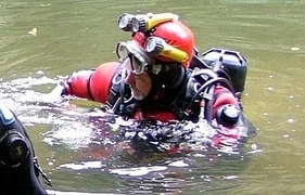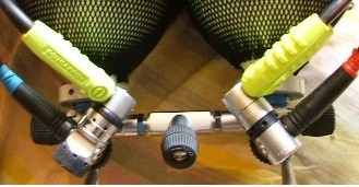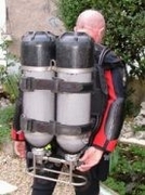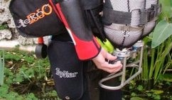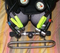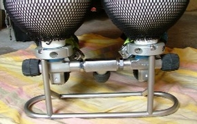 Pour avoir intervenu sur des bouteilles de plongeurs qui ne pouvaient pas soit, accéder, manipuler leurs robinets dans le haut du dos. Ceux-ci étant parfois trop durs, sachant aussi que dans cette position on ne dispose pas toujours de suffisamment de force, contrainte liée au froid, au stress, au manque de souplesse engoncé dans une chaude souris et combinaison. Convaincu q u'il n'est pas toujours possible de décapeler ou de basculer sur le coté de son choix le scaphandre pour pouvoir effectuer les manipulations. La situation, dans laquelle le problème surviendra et/ou l'état psychologique du plongeur, risque de compromettre cet exercice. C'est en secondes que la bouteille peut se vider… Autres avantages : Pouvoir disposer de la réserve supplémentaire et bien venue de gaz enfermé dans la bouteille sur laquelle le détendeur n'est plus opérationnel. Lors de la mise à l'eau, en sustentation, il sera facile seul, d'entendre et de déceler une éventuelle fuite du coté de la robinetterie. En hiver, on évitera le givrage des détendeurs. Ceux-ci baignant dans l'eau, dont la température sera toujours supérieure à celle de l'air. Enfin et pour rire, quoique… Se mettre à l'eau bouteilles fermées, ça ne m'arrive jamais ! Mais dans cette configuration renversante, je pourrais ouvrir mes robinets discrètement, sans que personne ne le remarque tout en gardant le sourire et échapper à offrir la traditionnelle tournée d'apéro… Quand le problème se pose : J'ai appris qu'il est judicieux d'aborder un problème sous une autre perspective, avec un autre regard. Pourtant souple, mais un peu coincé dans ma combinaison, le manque de degrés de liberté de mes articulations m'handicape pour accéder aux robinets placés derrière la nuque, l'efficacité impose rapidement de passer par le bas. Ce geste est plus naturel pour moi, donc il sera de meilleur réflexe. C'est évident, j'adhère à l'idée que mes robinets sont mal placés. Le plus simple serait de renverser les bouteilles, à la façon des pompiers, des professionnels et autres inspirateurs de recycleur. Pas pour se donner bon genre, être dans le coup, mais par pure logique. Comme je fais parti de ces nombreux plongeurs qui observent et échangent sur le terrain, qui ensuite avec plaisir bricolent dans leur garage, je me suis mis sur la bête. Il m'est apparu que le problème n'est pas aussi complexe que ça si j'accepte de remettre en cause certaines de mes habitudes (28 ans de plongée…). Alors j'ai franchi la frontière, je suis passé du coté figé des forces reconnues et établies voire dogmatiques, au coté obscur des exercices pratiques stériles et inutiles, des ré-inventeurs du fil à couper le leur… Les robinetteries et les bouteilles : Les robinetteries, équipées de tube plongeur, écartent le risque d'obstruction pour l'arrivée du gaz lorsqu'elles sont têtes en bas. C'est déjà un point… Le cul de la bouteille protégé par un culot retaillé pour supprimer les angles possibles d'accrochage (filet, fil d'Ariane, cheveux de sirènes, collets pour marginaux…) pourra prendre d'éventuels chocs sans aucune incidence sur le bon fonctionnement des détendeurs. Il en n'est pas de même en plongeant de façon classique. Je garde aussi l'option du port de casque, à découvert en milieu hostile, je reste couvert (Souvenir de St Georges « Quand le plafond descend ») …. Au repos, rien ne m'empêche de poser mon scaphandre sur le cul des bouteilles. Regarder mon gilet à l'envers ne me déstabilise pas plus que lui. Si toutefois, cela l'indispose, je le coucherai volontiers au sol. La protection mécanique des robinets et des 1 er étages se doit d'être solide mais aussi légère et ne pas se transformer en obstacle pour atteindre les têtes de robinet. L'essai est réalisé par une protection mécanique standard du commerce.