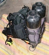 En ce qui concerne la longueur du scaphandre, il faut veiller à ce que le bas de celui-ci n'arrive pas à gêner l'arrière, le haut des cuisses, entravant le palmage. Les robinets ne doivent pas, eux aussi être trop bas pour conserver un accès facile. Il ne me faudrait pas compenser en remontant déraisonnablement les bouteilles dans le dos. Comme je ne suis pas de grande taille, je n'utilise plus de 12 litres longs en dorsal, mais des 10 ou des 12 litres courts. Mais vous, grands ou longs, pas de problème, (deuxième procès à mes parents). L'idéal, s'il en est, serait que cette protection mécanique soit la moins haute possible. Partant de la pièce standard, en ma possession, elle sera prochainement raccourcie de 3,5cm. Quant à son poids, 750 grammes. Le poids de la protection, suivant l'alliage utilisé est négligeable. Le poids du scaphandre reste identique à celui d'un scaphandre porté classiquement robinets protégés en haut. Les robinets droit et gauche sont horizontaux. Les volants tombent naturellement en main droite ou gauche. Avec des relais latéraux, quand ils sont accrochés par deux points, je décroche le mousqueton arrière, de par leur poids soit positif ou négatif, le relais bascule et l'accès au robinet arrière est libre. La vanne d'isolation est orientée vers l'intérieur à 45° vers le sol, c'est dans cette position qu'elle me vient le mieux en main. Les flexibles et les détendeurs : Les tuyaux moyenne pression des détendeurs sont plus longs (100cm) que le standard. Ces flexibles remontent sur le coté droit et gauche de la bouée dans des passages de l'enveloppe utilisés à cet effet. Les détendeurs ne peuvent pas tomber et heurter le sol lors de déplacements marchés, ni partir en arrière (avantage) du fait que leurs flexibles passent dès leur sortie du 1er étage à l'intérieur (double toile) et sortent en haut du gilet. Les détendeurs se trouvent naturellement à droite et à gauche en place devant le cou pour être accrochés. En ce qui concerne l'échange d'embout droit ou gauche, rien ne s'y oppose et le décapelage reste possible. Idem pour les moyennes pressions de l'étanche et de la bouée, les flexibles sont longs de 100cm et ils passent par les mêmes gaines, droite et gauche. En ce qui concerne les manomètres, les tuyaux de 70cm ceinturent la taille à l'intérieur de la bouée et sortent devant pour lecture. Ainsi tous les tuyaux moyenne et basse pression se trouvent protégés. L'ensemble est compact… Il est apparu qu'il serait plus difficile : Non pas de concevoir une pièce métallique légère et robuste, mais bien de repenser le sens des bouteilles. Pourquoi ? L'héritage… Peut-être, qu'il faut remonter à l'origine ? L'histoire de la plongée sportive, sa formation et son enseignement en France y contribuent. Tout repose sur des immersions vécues en palanquée. Si toutefois tu n'es pas autonome, tu pourras décliner cet éventuel manque sur ton « chef de palanquée ». Dans ce cas, que tes robinets ne te soient pas accessibles, n'est plus un problème. En cas de manque d'air, on te présentera un détendeur fusant de l'air à profusion car toujours près de toi un ange veillera. Peut-être que ce concept qui à fait ses preuves reste idéal pour de la plongée loisir partagée en palanquée, mais dès lors que je palme hors de ces espaces, un peu en marge, en grotte, en épave, voir seul ? Je ne pense pas non plus que ce renversement soit l'aboutissement, mais cela m'a permis de démasquer ma vulnérabilité dans certaine situation de plongées. Alors sans réinventer et renverser le monde ingénieux de la plongée, mais gardant en mémoire toutes ses expériences, mes acquis aussi, j'ai seulement voulu réduire ma part de risques. Je plonge dans le sens qui me va bien, celui de ma sécurité. Possible que cette idée soit mauvaise, si elle était bonne, cela se saurait depuis longtemps... En hérétique j'y crois. Je vois plus d'avantages que d'inconvénients. Et en ces temps un peu troubles où volontiers l'on tait l'autre, elle n'ira plus au bûcher, mais sombrera sous le poids écrasant des idées figées… |
