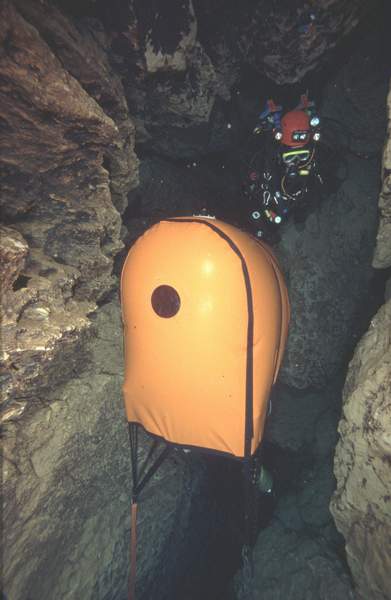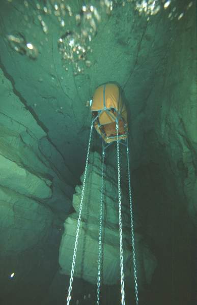 En 1985, lors de sa plongée à -153 à Fontaine de Vaucluse, Claude TOULOUMDJIAN avait prévu de réaliser une partie de ses paliers dans des parachutes installés entre -12 et -6.