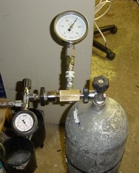 Le but de ce montage est de permettre une mesure précise en intercalant facilement entre le compresseur et la bouteille un manomètre de précision 1% facilement AMOVIBLE.