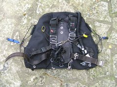 Diverses adaptations du harnais DiveRite existent pour plonger à l'anglaise ou en déstructuré. La plupart consiste en une inversion du montage: la wings est montée à l'intérieur du harnais = entre le plongeur et le harnais. Dive Rite le proposait sur son site auparavant (le lien a semble-t-il été supprimé). Le choix a été fait ici de laisser la Wings à l'extérieur (= pas entre le harnais et le plongeur) : ainsi, on n'est pas comprimé quand on la gonfle et l'on peut passer en configuration dorsale sans avoir a démonter/remonter le harnais. Ce montage a été utilisé avec divers blocs, jusqu'au bi12 avec 2 relais 7,5l et semble satisfaisant -une configuration plus lourde demanderait par contre à être testée. SANGLAGE WINGS (Wings modèle Rec) -photos 1 à 4 : Sanglage ventral de la wings (pour éviter qu'elle ne flotte librement et ne puisse être purgée ou ne s'accroche à toute aspérité). -Une fixation du haut de la wings a été utilisée (photo 5) mais ne semble pas nécessaire ; elle a donc été éliminée.