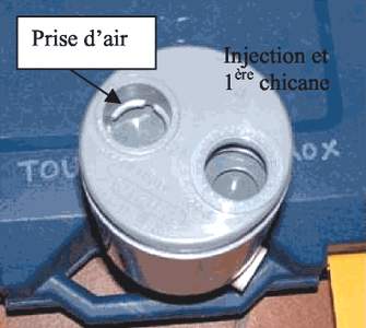 Le cahier des charges visait donc la simplicité d’utilisation et de fabrication, la compacité, la sécurité. Un peu de théorie : Les avantages, connus eux aussi, de ce mode de fabrication de nitrox sont la compatibilité avec les matériels non spécifiques nitrox (dans la limite des 40 %), la rapidité de fabrication et la précision du mélange obtenu et la possibilité de vider complètement les bouteilles d’oxygène. L’injection d’oxygène : Considérant que cette vanne à laminage était superflue et délicate à réguler, je l’ai remplacée par une injection d’oxygène à travers un orifice calibré qui possède la propriété de délivrer un débit constant pour une pression constante. Et, voyez comme ça tombe bien, le détendeur est justement construit pour délivrer une pression constante. Le flux continu : Il faut donc transformer le flux pulsé du compresseur en flux continu de façon à assurer l’homogénéité du mélange. Et c’est là que toutes les théories des vortex et autres flux contrariés qui me paraissaient approximatives s’écroulent : en fait ça marchait uniquement grâce à l’éloignement du point d’injection d’oxygène et de l’aspiration du compresseur, la colonne d’air faisant office d’amortisseur pneumatique. Il suffit donc d’allonger artificiellement la colonne d’air dans laquelle se fait le mélange pour en assurer l’homogénéité : une boite à chicanes fera l’affaire. Et en plus les brusque virages auxquels est soumis le flux gazeux contribuent à son mélange. Il y a sûrement une relation mathématique entre la cylindrée du premier étage et le volume de la boite à chicanes... |