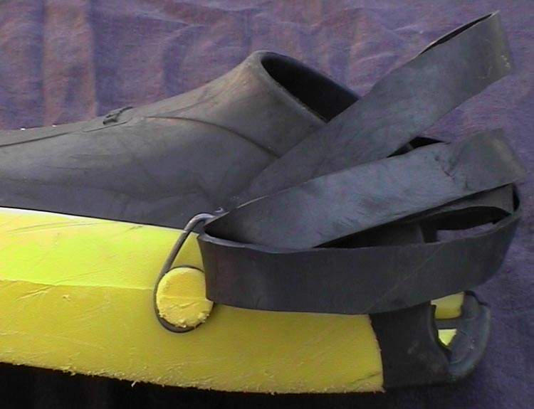 Il faut apporter une attention particulière à l'attache sur le coup de pied, qui doit être suffisamment " dure " (non-extensible) pour maintenir le pied sur la palme durant les mouvements (ciseaux verticaux ou brasses latérales).