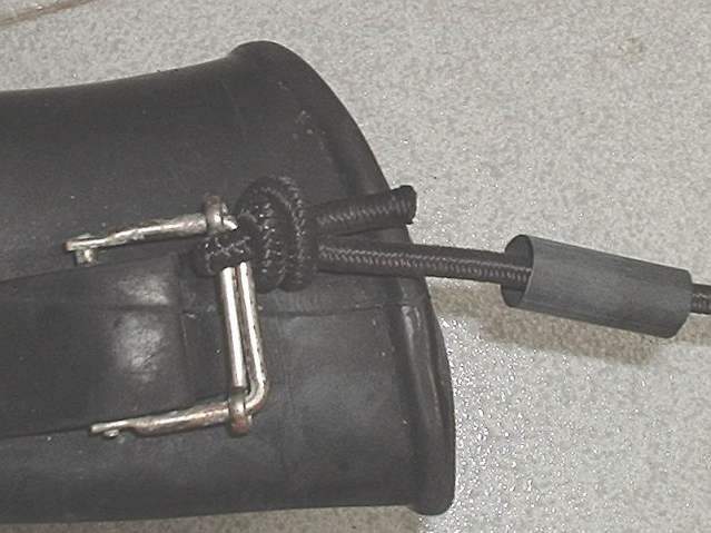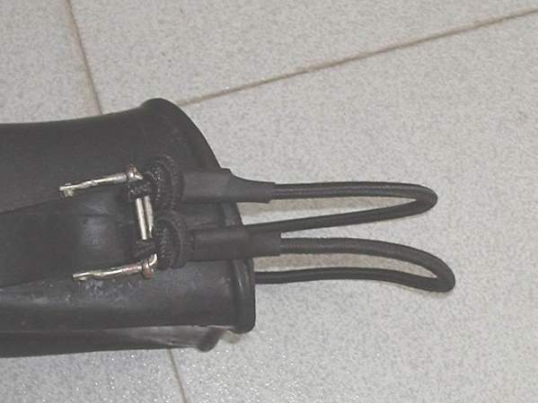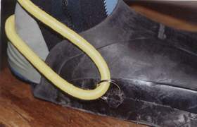 Le fond de la partie chaussante est entaillé (mais l'extrémité solidarisée par un collier) afin d'évacuer l'argile et le sable collés sous les chaussures après une progression post-siphon.