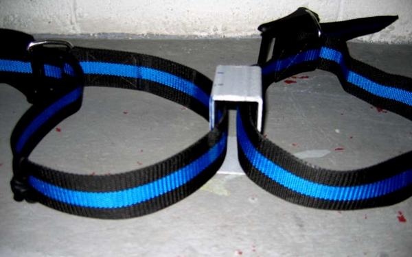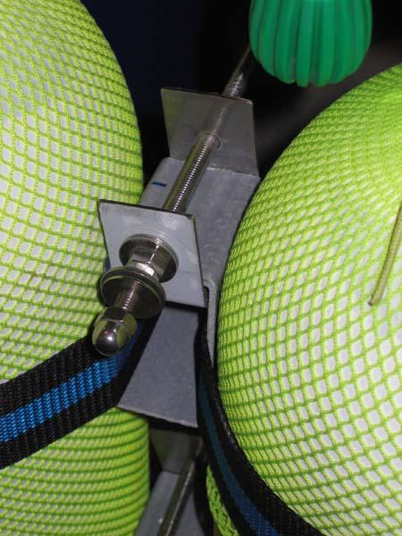 On a penser à prendre deux morceau de poutre rectangulaire (ici en fibre de verre, mais alu ou inox sont également possibles) de 6 cm de long et suffisamment large pour laisser passer la sangle en longueur.