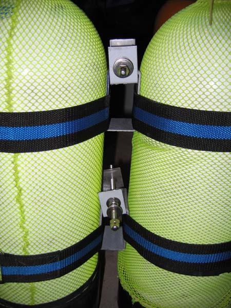 Partant du point de vue qu'on cherchait un système permettant d'accoupler et de désaccoupler indépendamment les bouteilles. Qu'on n'avait pas accès à une fraise pour l'inox sans payer. Que le système ne devait pas prendre trop de place ni de poids une fois démonter.