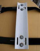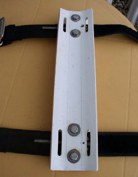 en pvc épaisseur 1 cm. Entre-axe des tiges filetées pour une plaque OMS, visserie inox. Je monte indifféremment des blocs de 6 à 18 litres (je n'ai pas de 20 litres). ça m'a coûté 10 euros sans les sangles mais je ne le commercialise pas.