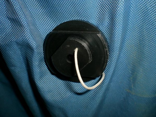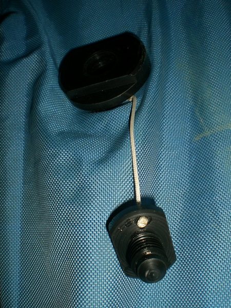 Un système tout simple pour éviter la perte de la vis sur les purges pipi Aitess (Bernard Glon) à gicleur. Une petite ficelle est nouée autour de la base ainsi que sur la vis préalablement percée pour loger la cordelette. |