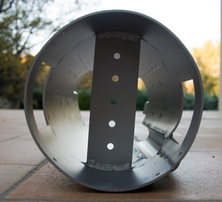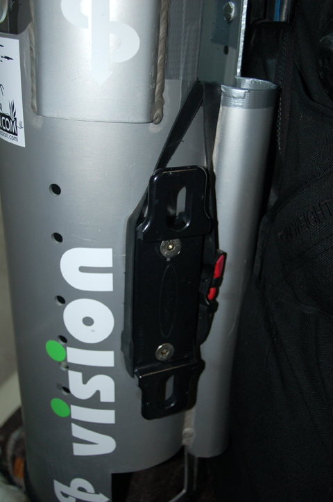 Une plaque supplémentaire est soudée dans la partie en contact avec le dos du plongeur. C'est là que viennent se fixer harnais ou plaque afin que la fixation frame / harnais (ou plaque) soit solide et durable.