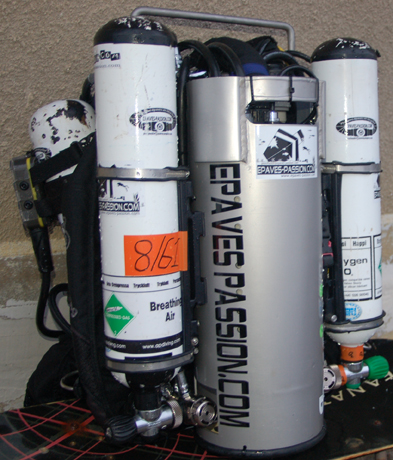 Une TRAVEL FRAME" est un tube le plus souvent en aluminium qui permet de remplacer avantageusement la "boîte" d'origine des recycleurs AP Diving. La boite jaune est déposée. La Frame fixée sur le harnais d'origine en lieu et place de la boite. La tête et le canister se loge à l'intérieur de la Frame alors que les blocs sont fixés de part et d'autre à l'extérieur de la Frame.