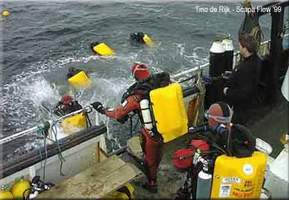 La plongée en structure : La mixité circuit ouvert et recycleur sur un bateau de plongée soulève un certain nombre de questions auxquelles le directeur de plongée doit être à même de répondre. Dans un premier temps il s’agit de s’assurer du respect de la réglementation en vigueur : niveaux des plongeurs, utilisation des gaz en conformité avec les qualifications demandées par l’arrêté mélange,... bref, le quotidien. Au delà de la réglementation spécifique, le bon sens doit prévaloir, notamment pour l’organisation sur le bateau et la constitution des palanquées. On respectera donc une certaine homogénéité basée sur les types de recycleurs et les gaz utilisés. Propositions : regrouper les plongeurs équipés de recycleurs sur le bateau Un point fondamental distingue l’utilisation d’un recycleur de celle d’un circuit ouvert : l’attention que l’on doit apporter à son matériel. En effet, en circuit ouvert, une fois la bouteille gréée et la quantité d’air vérifiée, le plongeur est prêt à s’immerger sans délai. En recycleur, il en est tout autrement : " l’avant " et " l’après " plongée sont des instants où l’utilisateur effectue un certain nombre d’opérations primordiales et spécifiques à son matériel. Avant la plongée : Admettons que les pressions en gaz ont été contrôlées ainsi que la durée d’utilisation de l’absorbant de CO2. Les vérifications portent alors sur : la bonne étanchéité du système que l’on confirme par des tests de mises sous pression ou dépression de l’ensemble de la boucle respiratoire, la vérification du bon fonctionnement des soupapes anti-retour de l’embout et le suivi à la lettre de la check-list des consoles des appareils à gestion électronique (calibrage des sondes oxygène en fonction de la pression atmosphérique, vérification des setpoints, ...). Toutes ces procédures nécessitent un minimum d’isolement de concentration généralement peu compatibles avec l’excitation qui caractérise l’avant plongée. Ne soyons pas donc surpris de voir le plongeur en recycleur affairé et donc peu enclin à répondre à toutes les questions que ne manqueront pas de lui poser ses compagnons de plongée. Il partagera avec plaisir la connaissance de son matériel à l’issue de l’exploration ! Après la plongée ou plus couramment après la journée de plongée, l’utilisateur apportera un soin plus important à l’entretien de son matériel que ce qui est couramment constaté avec les circuits ouverts. La matériel sera abondamment rincé voire désinfecté si il y a partage du matériel par plusieurs utilisateurs (embout et faux poumons). La chaux sodée sera remplacée en fonction de sa durée d’utilisation et les " pleins " en gaz refaits En synthèse : l’utilisation d’un recycleur demande de la minutie et de la rigueur. Organiser