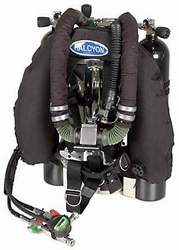 On dénomme ces systèmes passifs car l’ajout de gaz n’est pas automatique. Il est déclenché de manière mécanique par la ventilation. Ces recycleurs fournissent en quelque sorte du gaz frais à la demande. Ce type de matériel offre un avantage important comparé au recycleur semi fermé de type actif : il est moins sujet à générer une hypoxie. La moindre défaillance du système demandera au plongeur des inspirations rapprochées qui seront rapidement détectées. Un peu à la manière d’un plongeur en circuit ouvert qui tombe en panne d’air, il s’en rend compte assez rapidement. |