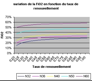 Calcul de la fraction inspirée d’oxygène (FiO2) : Sans nous transformer en mathématicien, les équations qui suivent sont couramment partagées par la communauté " tek " et reposent sur le postulat que, à un instant donné, il y a équilibre entre la quantité de gaz qui entre dans le recycleur et la quantité qui en ressort. Les formules qui suivent n’ont d’autre intérêt que de mettre en lumière les résultats obtenus. Avant de les exposer, il est nécessaire de définir quelques paramètres : FO2 : la fraction