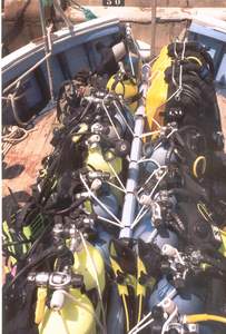 Et la plongée souterraine ? A ce jour aucun recycleur du commerce ne propose la redondance chère aux plongeurs spéléo. On assiste donc à des fabrications personnelles qui laissent souvent admiratif devant l’ingéniosité et le travail accompli pour répondre au cahier des charges fixé par leur propre utilisateur (exemples : RI 2000, Joker V,...). |