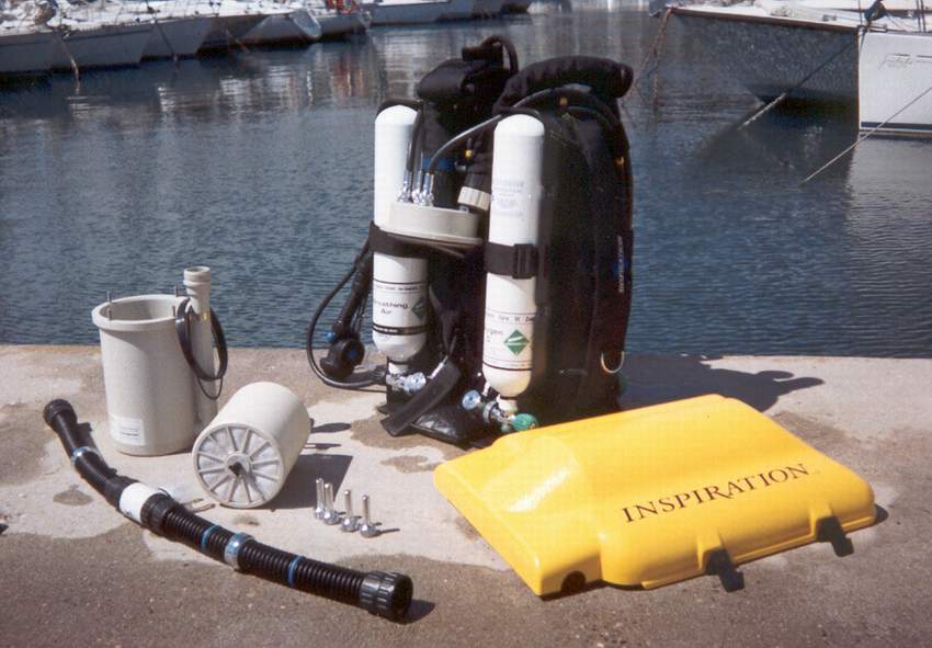 L’autonomie : la bouteille d’oxygène fournie avec l’Inspiration est d’une capacité de 3 litres à 200 bars soit 600 litres. En prenant une hypothèse de consommation maximale d’oxygène de l’ordre de 3 litres par minute, nous bénéficions d’une autonomie théorique de 200 minutes (3h20 !) et ce, quelle que soit la profondeur !!!