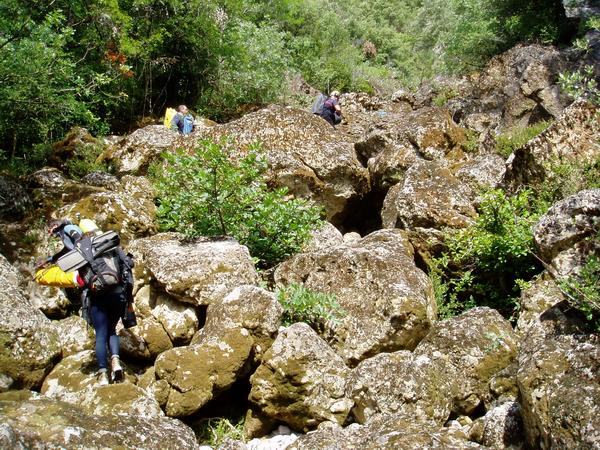 La Bythinelle de Navacelles Bilan des prospections des 11, 12 & 13 juillet 2004 dans les gorges de la Vis Résumé : Introduction : Les MOITESSIERIDAE sont très diversifiés dans le Sud de la France où de nombreuses espèces endémiques restreintes sont connues. Citons Paladilhia pleurotoma, bassins du Lez et de l'Hérault (quelques occurrences ailleurs), Heraultiella exilis, endémique d'une partie du département de l'Hérault, Moitessieria rolandiana, commun dans tout le sud-ouest, Henrigirardia wienneni, endémique du réseau des Fontenilles, Bythiospeum bourguignati, relativement commun dans le Sud Est du Languedoc-Roussillon… Les HYDROBIIDAE sont une famille de mollusques aquatiques comprenant plus de 1000 espèces répartis dans une centaine de genres actuels. Ils sont connus depuis le Carbonifère et occupent aujourd'hui des milieux variés allant des eaux saumâtres aux eaux souterraines. Les sexes sont séparés, les femelles sont ovipares et le développement est direct. Les animaux sont petits (1.5 à 6 mm). Au sein de la famille des Hydrobiidae, les Bythinelles (c.a.d. les espèces du genre Bythinella) sont un groupe d'espèces européennes principalement crénicoles (Crénicole = qui vit dans les sources). Leur répartition est fragmentée, les sources ou les bassins versants peuvent être considérés comme des milieux isolés les uns des autres et les espèces actuelles ont pu diverger par isolement géographique. Deux espèces sont identifiables localement : Bythinella cebennensis et Bythinella eurystoma, auxquelles s'ajoute une forme souterraine, la Bythinelle de Navacelles. Quelques occurrences de Bythinelles souterraines sont connues. La Bythinelle de Padirac, Bythinella padiraci, endémique au gouffre du même nom et aux réseaux qui y sont liés, est l'espèce la mieux connue (BICHAIN et al. 2003) La Bythinelle de Navacelles Les premières coquilles de la Bythinelle de Navacelles ont été récoltées en février 2002 dans des alluvions de la Vis. Au vu des récoltes qui ont suivi, il est apparu que cette Bythinelle était probablement souterraine (pas moyen de trouver des individus vivants dans les sources). Les premières récoltes en milieu hypogé ont été effectuées par Frank Vasseur à Gourneyras en juillet 2002. Mais il a fallu attendre août 2003 pour que les premiers individus vivants soient découverts en place à la grotte de la Folatière. L'expédition de Juillet 2004 avait pour but de retrouver des individus vivants pour poursuivre leur étude. La coquille de la Bythinelle de Navacelles mesure en moyenne entre deux et trois millimètres de haut. Elle est assez variable, mais se caractérise par un ombilic assez profond caractéristique. L'animal est complètement dépigmenté et a partiellement perdu ses yeux, visibles sous la forme de simples tâches oculaires. Matériel et méthodes : Le choix des stations de récolte pour ces trois jours a été largement déterminé par les récoltes préalables. Les résurgences les plus riches en coquilles au niveau des sources ont été celles de la Tuilède, de la Folatière et de Rodel aval. Méthodes d'échantillonnage :Précédemment, la méthode d'échantillonnage a généralement été le ramassage de sable au niveau des exsurgences. Ce sable peut être ramassé sec (à l'extérieur après de grosses crues) ou dans l'eau à l'aide d'un filet aux mailles de 500 micromètres. C'est la méthode qui a donné les meilleurs résultats à Rodel aval. Le pompage à l'aide de la pompe à Gasoil permet d'aspirer les éléments fins par un tuyau qu'on peut enfoncer entre les gros blocs. Peut donner de bons résultats mais a été globalement infructueux pour les prospections de juillet 2004. La pompe Bou-Rouch est une pompe à main qu'on peut enfoncer à plus d'un mètre dans le sédiment du lit des cours d'eaux. Conçue pour explorer la vie dans le sous-écoulement des rivières, où elle donne de très bons résultats, elle est peu utilisée en milieu souterrain en raison de son encombrement. Elle a été utilisée à Rodel aval mais n'a pas donné de résultats.