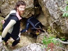 On constate une réelle séparation des deux formes à partir caractères utilisés pour décrire la coquille. Les Bythinelles souterraines (en jaune) sont nettement plus ventrues et de traille plus variable que les Bythinelles eurystoma (en rose). Il n'a pas été trouvé d'intermédiaires entre les deux formes de coquilles. La découverte d'un individu pigmenté ayant une forme de Bythinelle de Navacelles à Gourneyras est le premier cas d'individu possédant les critères de l'un et de l'autre. Il apparaît logique que cette Bythinelle soit liée aux deux autres. La découverte d'une population fossile dans les gorges de la Vis montre que la morphologie des coquilles anciennes recouvre celle des formes actuelles. On peut penser qu'il s'agisse de l'ancêtre commun entre Bythinella.eurystoma et la forme Navacelles. Enjeux scientifiques et de conservation Quelque soit le statut nomenclatural de cette forme de Bythinelle, son étude pourra nous apporter d'importantes informations sur les schémas de colonisation du milieu souterrain. Le matériel accumulé (animaux vivants, coquilles fossiles) nous permet d'appréhender l'histoire évolutive du groupe depuis les glaciations et de travailler sur un schéma évolutif de colonisation du milieu souterrain. L'écologie de la Bythinelle de Navacelles est encore inconnue, mais son rôle comme indicateur de la qualité des eaux ou des connections entre les réseau devrait être approfondi. Enfin, en terme de protection de la biodiversité, cet forme de Bythinelle souterraine est unique en son genre et représente un génome qu'il nous appartient de préserver au même titre que celui de n'importe quelle espèce animale. Elle peut être considérée comme rare et microendémique, donc potentiellement vulnérable selon les critères de l'IUCN (listes rouges des espèces menacées d'extinction). Bibliographie : BICHAIN, JM, BOUTSOCQ, C & PRIÉ, V (2003) La malacofaune du réseau de Padirac FALKNER ,G., RIPKEN, T.E.J. et FALKNER, M. (2002) Mollusques continentaux de France. Liste de référence annotée et bibliographie. Patrimoines Naturels, 52, 350 p. GIRARDI, H. 2001 Moitessieria wienini sp. nov. Des eaux de l'aquifère de la montagne de la Selette (France, Hérault) ( Mollusca : Gastropoda Moitessieriidae) . Documents Malacologiques, 2 : 31-38. PRIÉ, V. 2002 Contribution à la connaissance malacologique des causses méridionaux et des gorges de la Vis (Gard et Hérault, France) Documents Malacologiques, 3 : 25-33. Sur Internet :http://www.plongeesout.com/sites/roussilon-pyrenees/herault/calavon%20macologie.htm http://www.pascalis-project.com Remerciements : Les plongeurs spéléo qui ont collecté en milieu stygobie : Frank Vasseur, Nadir Lasson, Damien Vignoles, Patrick Bordonado et Jean-Luc Armengaud, Fédération Française d'Étude et de Sports Sous marins. Les spéléos qui ont participé aux récoltes « à marée basse » : Le spéléoclub du GRES en général, Richard Villeméjeanne pour ses photos et la doc. sur la Folatière, Michel & Xavier Meilhac, Gilles Hanula pour ses photos à Rodel aval, Joël Algand, Luc Barral, Claude Pieyre, Arthur Safont et son collègue, Hervé d'Ales et ses deux fils. Sans oublier Philippe Martin et Xavier Boutolot pour leurs remarquables et enthousiastes tentatives de photographie en plongée spéléo. |