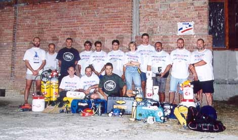 La Mairie de VENDARGUES , le club Exploreurs , le Club Spéléo des Pompiers de Grenoble-Seyssinet , l'association Ganeko , le Spéléo Club de la Gardonnenque , le Comité Départemental de Spéléologie du Gard. Luigi CASATI , Marcel MEYSSONIER , Edith MAREK-LIMAGNE . Enfin, merci aussi et surtout à la Fédération Bulgare de Spéléologie pour son accueil exemplaire : Alexey JALOV , vice-président, Nina et Trifon DAALIEV , secrétaire général, Plaman PETKOV , administrateur et président du club de Vratsa, Krasimir PETKOV , plongeur du club de Pleven. Summary : « Bulgarie 2001 » expedition Pays: Bulgaria Dates: from 1st to 22 august. Ezeroto ( Dolno Ozirovo ) : Down to a short galery, sump is dryed . A constriction looks like man-made closed by mud. Behind it is still mud. Toplya ( Malka Zhelyazna ) : Strong spring already known for 180 m in 3 x 5m. gallery until –22.. Unfortunately, very low level reduce visibility to zero. T°=6°C. Glava Panega ( Panega) : Biggerst srping of Bulgaria known about 260m (-51) was main target of expedition. But a foactory for drinkable water recently used that water. It was not possible to obtain autorizations for diving there. Can be a main target of another expedtion in case of authorization. Medjata dupka (Lutadjik) : 40 minutes walking to reach 50 of little gallery until the sump, a narrow channel explored about 17m until –8,5m. Sokolska jama (Lutadjik) : One hour walking until entrance and 600m away entrance sump is dived about 75m until boulder choke at –17. Izvor Sokolska (Lutadjik) : Spring of upside cave. Fault closed by boulder choke at –3 (5m). Chernija Izvor (Glavatsi): Spring with upside gallery. S.1 (10m ;-2) followed by 30m of nice gallery (flowstone) S.2 (15m;-4) followed by 90m of narrow channel where équipment can't be carried backside. S.3 (82m;-13) and just after S.4 (5m;-1). After, a fault is explored about 100m, still going on, but must be explored with caving clothes. Jabokrek ( Chiren ): Surgency of Ponora. The two caves are connected by a muddy but comfortable sump (240m;-2). Ponora ( Chiren ) : Magnific ponor ancient show-cave. We visit and photography for 2300 m. . Grgjuva dupka (Zgorigrad) : 400m of gallery and river until a narrow sump (45m ;-6). Dushnika (Iskrec) : Strong temporary spring (20m3/s hight water) dived until 100m from entrance (-7). Stopped on a broken place with several air-bells. A low-ceilling channel, 30m from the entrance, explored during 20m at the end of expedition looks like being the stream place. Temnata dupka (Lakatnik) : Magnific known-cave of Bulgaria whose last sump is 800m away from entrance. It was dived for 240m (-20), until a narrow boulder choke with several constrictions. Kalna Matnitza ( Glavatci) : Spring used for drinkable water with cave above water. First sump was dived during 15m after digging until constriction. Ledenika (Vratsa) : Very nice show-cave. Moreover exploration, we worked for collecting animals samples in caves and sumps, realizing some photography in caves and sumps, and answering for interviews for national radio. pecial thanks to : Societies TORRO, STRADAL, Point P, BEAL, ISOVER, Marbrerie artisanale, Imprimerie Centrale, S.B.C.M., DEWALT, Vieux Plongeur, TOPSTAR, Euromer et 3A Location. La Mairie de VENDARGUES , le club Exploreurs , le Club Spéléo des Pompiers de Grenoble-Seyssinet , l'association Ganeko , le Spéléo Club de la Gardonnenque , le Comité Départemental de Spéléologie du Gard. Luigi CASATI , Marcel MEYSSONIER , Edith MAREK-LIMAGNE . La F.F.E.S.S.M . (C.N.P.S.), la F.F.S . (C.R.E.I.), U.B.S., S.S.N., A.D.E.P.S. Moreover very best thanks to Bulgarian Fédération of Spelelogy for its marvellous welcoming and efficient cooperation : Alexey JALOV , vice-président, Nina and Trifon DAALIEV , secretary, Plaman PETKOV , administrator and president of Vratsa caving group, Krasimir PETKOV , cave-diver from Pleven caving group.