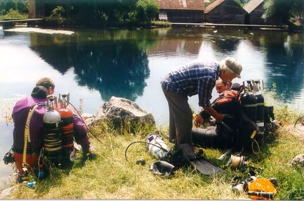 Après un contrôle de police très cordial, nous mettons le cap sur Fuzine, où nous sommes certains de bénéficier d'un minimum de commodités. Là, Karlo, Neno et Gordan, les copains rencontrés l'an dernier nous accueillent et nous confirment qu'il n'y a aucun problème pour plonger dans Izvor Licanke, la source qui alimente la ville en eau potable.