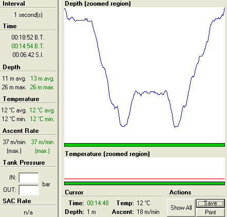Toute la plongée ainsi que la déco, a été réalisée à PpO2 constante sur mes recycleurs CCR