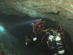 Le S1 fut franchi en 50mn palier compris, mais je prendrais 45mn de plus à -6m sous oxy. David me retrouvera avec son Joki vers 30m, et restera un bon moment avec moi, pour me donner son recycleur en cas de problème. Il fera de fréquents allé et retour pour remonter le propulseur et les blocs inutiles, viendra ensuite Laurent avec sa caméra ( qui remarche ), pour nous filmer au palier et descendra avec David vers 40m.