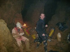 L'exploration de la galerie des Lacs n'est pas terminée, bien au contraire, elle ne fait que commencer. Il fallait absolument changer l'équipement en place et acheminer le matos plongée au fond en sécurité. C'est chose faite.