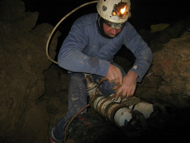 Le 17 et 18 Août 2007, nous avons enfin l'accès au Tunnel. Le GSHP reprend les explorations, aidé par la suite par le GSO. Le premier objectif, changer tout l'équipement jusqu'à la Galerie des Lacs. Le deuxième objectif, acheminer deux matos complets pour deux plongeurs.