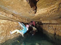 mètres, -46m. Une grande diaclase coupe la galerie est autorise une