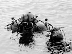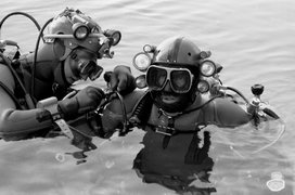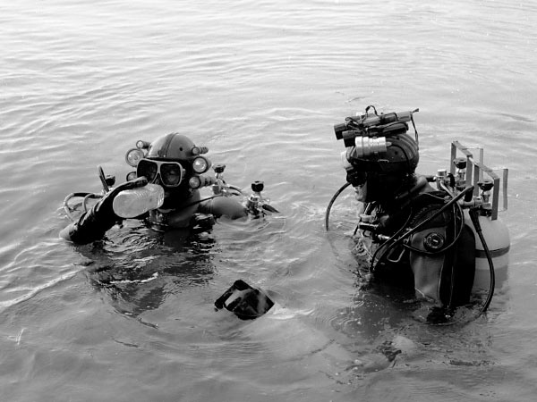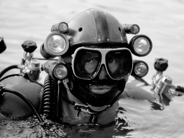 Remplaçant Cyrille, après le test d'une collerette “révolutionnaire” (étanche à l'eau et semi-étanche au flux sanguine !), j'y effectue une plongée le mercredi 10 octobre 1990.