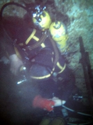 On s'était toujours dit « tu ne doit jamais avoir peur, si tu as peur tu paniques et si tu paniques… c'est la mort ». Pas plus compliqué, c'était notre devise. Bon en cet instant grave je me heurtais toujours à ce mur, le temps passait, l'air de nos scaphandres aussi. Je me demandais quels signaux Mickey envoyait aux autres. Je me disais aussi qu'Henri pourrait intervenir, mais s'il y avait eu un grave problème, tel qu'un éboulement, il n'aurait jamais pu nous rejoindre et il serait trop tard pour nous. Je ne pouvais pas communiquer avec Mickey dans cette « soupe » Aucune communication possible avec personne. J'étais le seul à pouvoir prendre une décision et vite. Je suis dit « Denis on est passé tout à l'heure, forcement le passage est quelque part » Il vaux mieux positiver dans ces cas !