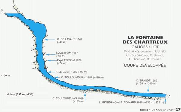 La fontaine des Chartreux n'a pas fini de nous révéler ses secrets, d'autres expéditions sont prévues en 98/99 pour nettoyer la zone des -90 m, -115 m, et poursuivre l'exploration au-delà de notre terminus, Ces plongées expérimentales (temps passé au fond, durée des paliers...) ne manqueront pas à moyen terme de faire évoluer la plongée sportive en général (nouveau matériel, nouvelles tables, nouvelles procédures...) grâce au soutien de professionnels et de passionnés sans qui rien ne serait possible.