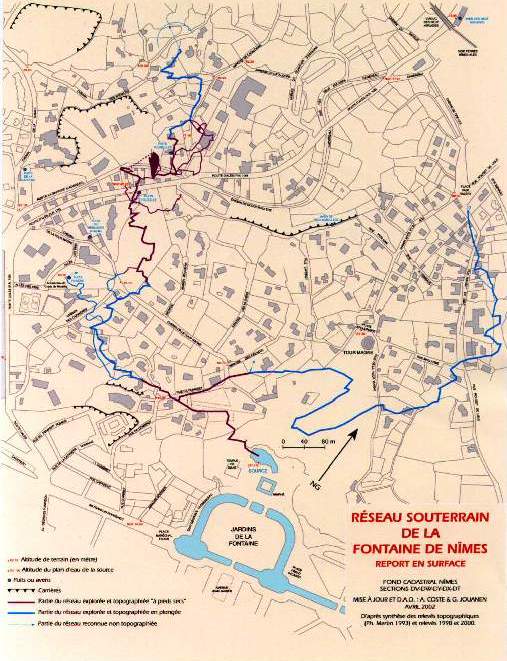 - Autour des années 60, le développement technique autorise des pompages importants baptisés »opérations NEMAUSA » ouvrant ainsi aux regards des Nîmois, près de 700 de mètres de galeries habituellement noyées, les réseaux Nord et Ouest sont alors partiellement reconnus.