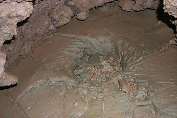 14h30: un feu nourri de boules d'argile salue notre arrivée dans la vasque du S.4. Alain, Christian, Christophe, Claude, Jean-Louis et Jérôme sont là. Les sourires de satisfactions éclairent les visages à la vision du carnet topo couvert de notes, et s'accentuent à l'annonce du résultat de l'exploration.