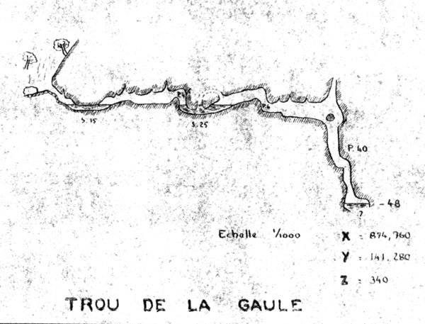 le 25-11-1956 franchissement en plongée des deux siphons, nous sommes arretés par une petite verticale de 6 mètres peu aprés l'amont du siphon n° 2.
