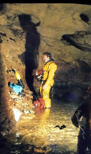 15, 16 et 17 août 1981 : plongée de l'A.S.E. Cavernicoles. Le bivouac est installé également dans la Salle du Chaos, mais l'équipe de plongeurs ne parvient pas à dépasser le terminus des Dijonnais et s'arrête à la Salle des Burgondes.