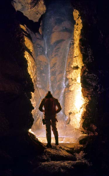 Situé juste au sommet d'une cascade de 17m, le S1 correspond au schéma classique du siphon suspendu. L'eau claire qui sort d'un vaste conduit noyé, le bruit incessant de la cascade, contribuent à créer en cet endroit une atmosphère peu commune. L'obstacle de courte durée n'offre en fait aucun problème (30m, -60m). Au-delà du S1, nous retrouvons un canyon horizontal entrecoupé de bassins et de courtes cascades qui se franchissent sans difficulté. A 660m du S1, une coulée stalagmitique barrant entièrement la galerie marque le débou-ché de l'Affluent des Lyonnais. Quelques mètres plus loin, nous butons sur le deuxième siphon (3500m de l'entrée, + 300 m). Long de 60 m et profond de 8 m, il présente une section plus modeste que le premier ( 2 x 1,5 m) et se dédouble à quelques mètres de la vasque.