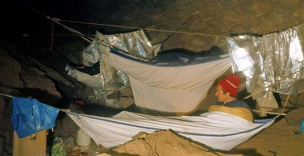 Jacques Michel, Bivouac post S2 à 360m photo P. Degouve