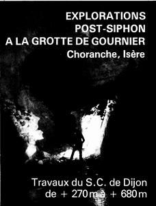 LA GROTTE DE GOURNIER est une des "classiques" du Vercors. Pour l'historique de la cavité déjà connue avant les explorations du Spéléo-Club de Dijon, on se rapportera utilement à l'ouvrage de Claude Chabert : "Grandes cavités Françaises", pages 72 et 76.