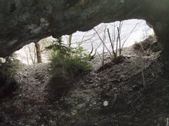 Localisation : Nom : grotte du Kiapet commune d’Echevis Elle est située quatre cent mètres après le restaurant du refuge en montant sur le tunnel des baraques. Il faut prendre un talweg en rive gauche en direction du tunnel, monter sur environ 80 m l’éboulis, la grotte est au pied de la falaise.
