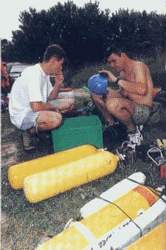 dizaines de plongées de recon-naissance et d'équi-pement ont permis
