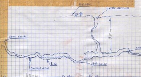 Le passage du 2 ème siphon nous amène près d'un 3 ème siphon. Toutes les galeries ont été topographiées. La mise à jour sur papier, nous faisons des recoupements avec les topos de Sauvas et de la Cocalière. Rien n'est simple, mais nous arrivons à comprendre notre progression et les liens qui tissent tous ces réseaux entre eux ! Le 3 ème siphon de Peyrejal est franchi. Nouvelles topographies des galeries et nous nous retrouvons devant un 4 ème siphon. Pas mal, on est très loin de tout dans Peyrejal !! A Lyon, nous mettons à jour, encore une fois, nos topos. Tout est sur papier et nous observons l'évolution de notre avancée : - Bien, on a un 4 ème siphon à franchir, disait Marcel, - Tout est près, les gars ! - On part pour les deux premières semaines d'août ! - On va avoir le temps d'étudier tout cela ! Nous sommes partis. Installation de notre camp de vacances et de travail, à la Font-Vive. VENDREDI 3 AOUT 1973 Le GRPS se réveille à 7 heures du matin. Comme d'habitude, certains sont réveillés par les autres. Ça fait la gueule et ça ronchonne un peu partout. J'oserais dire que des coups de gueules sont poussés ici et là ! Les copines ont préparé un petit déjeuner copieux et cela met tout le monde d'accord ! Vers 10 heures du matin, tout le monde est en place, l'équipe de soutien extérieur est là, prête pour une surveillance météo. Les spéléologues du SC des Vans sont déjà entrés par l'issue artificielle. Peyrejal est déjà équipé et nous entrons, toute l'équipe. On sait que l'on va passer plusieurs jours et nuits ici. Nos sacs de matériels sont pleins, tout est là et nous emmenons notre 2 ème dérouleur. Il nous servira pour plonger le 4 ème siphon. Passage du 1 er siphon, puis du 2 ème , le 3 ème , je passe sur les détails, c'était difficile. Nos lignes téléphoniques sont tirées et nous laissons des EE8 et une personne en attente, tout le long de ce réseau. Il faut rendre hommage aux copains qui sont restés en poste, en attente pendant des heures, voir même des jours ! Leur seule distraction, « bouffer » des aliments énergétique, cela passe le temps et utiliser le téléphone pour faire un brin de causette avec les autres ! Recharger en pierres de carbure le réservoir du casque est aussi un bon passe temps ! Nous sommes entrés dans Peyrejal : Henri P., Henri B., Bob, Guy, Marcel, Yves, notre Pépé chéri ! Daniel B., Serge et moi. Neuf personnes ! Au final, il n'y aura plus qu'Henri P., Pépé, Bob, Marcel, Daniel B. et moi. Dernier relais, tous les autres sont restés à l'arrière, seul Guy est là, avec nous, devant le départ du 4 ème siphon. Bon on va y aller ! On a la boite topofil, allons-y, il faut tout topographier ! Il faut dire que nous avions perdu la notion du temps. On avait quelques nouvelles de l'extérieur, la sonnerie des EE8 tintant parfois. Guy allait rester ici, au dérouleur. C'était notre dernière chance de réussite. Si nous ne trouvons rien de nouveau, il faudrait revenir, en se donnant d'autres moyens ! En attendant, on ce préparait pour plonger ce 4 ème siphon : « On va partir, Henri, Bob et moi, disait Marcel, Ok, dans 3 minutes on vous rejoint, Denis et moi ! répondait Pépé Ca marche, on y va, on verra bien !! Les copains disparaissaient dans ce siphon : On va attendre un peu, me dit Pépé. Oui, j'espère que ça continue plus loin ! On a nos sacs « texair » avec nous, on verra bien ! En fait, on était perdus dans nos pensées ! Siphon franchi les gars ! nous dit Serge. Ok ! Ils confirment et demandent une liaison téléphone ! Serge basculait en liaison vocale, abandonnant, momentanément, le visuel. Allo ? Ok, je te passe Pépé ! Oui, comment va ? demandait Pépé Conversation, je ne savais pas ce qu'ils se disaient. On vous rejoint Denis et moi, à tout de suite ! On y va ? Ouais, ça continue derrière ! Et bien on va y aller ! Allez les gars, nous dit Serge, bon courage ! » On s'est engagés, Pépé devant moi. Nous étions sur mousquetons coulissants, sur le fil d'Ariane. La profondeur n'est pas importante, une moyenne de 18 mètres. C'est la longueur du siphon qui impressionne ! 200 mètres à franchir, dans des conditions relativement peu difficiles. Nous avons débouché et retrouvé nos 3 copains. « Bon, salut les gars ! Bien, on y est, on a topographié le siphon, maintenant on va continuer ! Pas mal cette galerie ! Oui, on a à faire ! Ok, on continue et on topographie ! » C'est parti, la galerie est de bonnes dimensions. Notre problème, c'est de franchir des lacs et rivières. De l'eau jusqu'au cou ! A part ça, tout va bien et nous progressons assez vite. Nous n'avons plus de communication possible avec les équipes restées à l'arrière. Nous topographions 500 mètres de galerie. Et on se retrouve devant ce qui semble être un 5 ème siphon. « Bon, on va plonger là-dedans les gars ! Oui, on va y aller ! On n'arrête pas ! Rien ne nous arrêtera ! » On plaisantait un peu. Cela faisait des heures que nous étions engagés dans ce réseau inconnu. Quel jour on était, quelle heure dehors ? Bonne question, on n'en savait rien ! On se fichait éperdument de cela, on allait aller voir, passer ce nouveau siphon ! Présentement, on se trouvait devant ce qui semblait être un 5 ème siphon. « Va falloir s'organiser ! disait Pépé Oui, on ne va pas tous partir à la fois… Ok, le problème, c'est qu'on n'a plus de fil d'Ariane… Tant pis, on va se servir du fil topo ! Ok, qui va voir ce qu'il y a de l'autre coté ? » Nous étions tous volontaires, bien évidemment ! Daniel B. s'engage. Il disparaît dans l'eau, entraînant le fil topo avec lui. J'étais prêt à partir aussi, Bob derrière moi. Difficile de décrire ce qui se passe dans ces moments-là ! Je m'engageais à mon tour. Ce siphon est très court et j'arrivais vers Daniel. Nous étions dans l'eau, presque jusqu'au cou ! « Comment ça va, ça se présente bien ? Pas mal Denis. On peut continuer on 